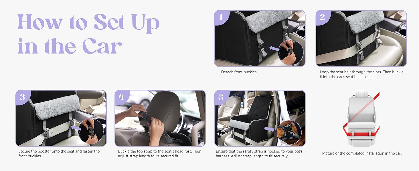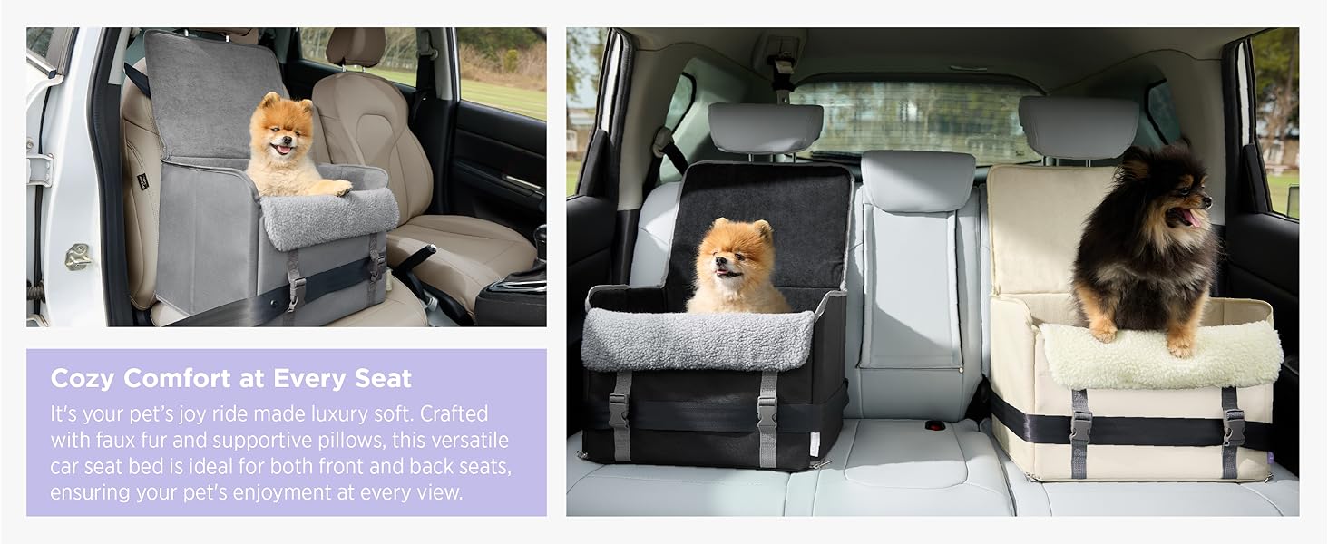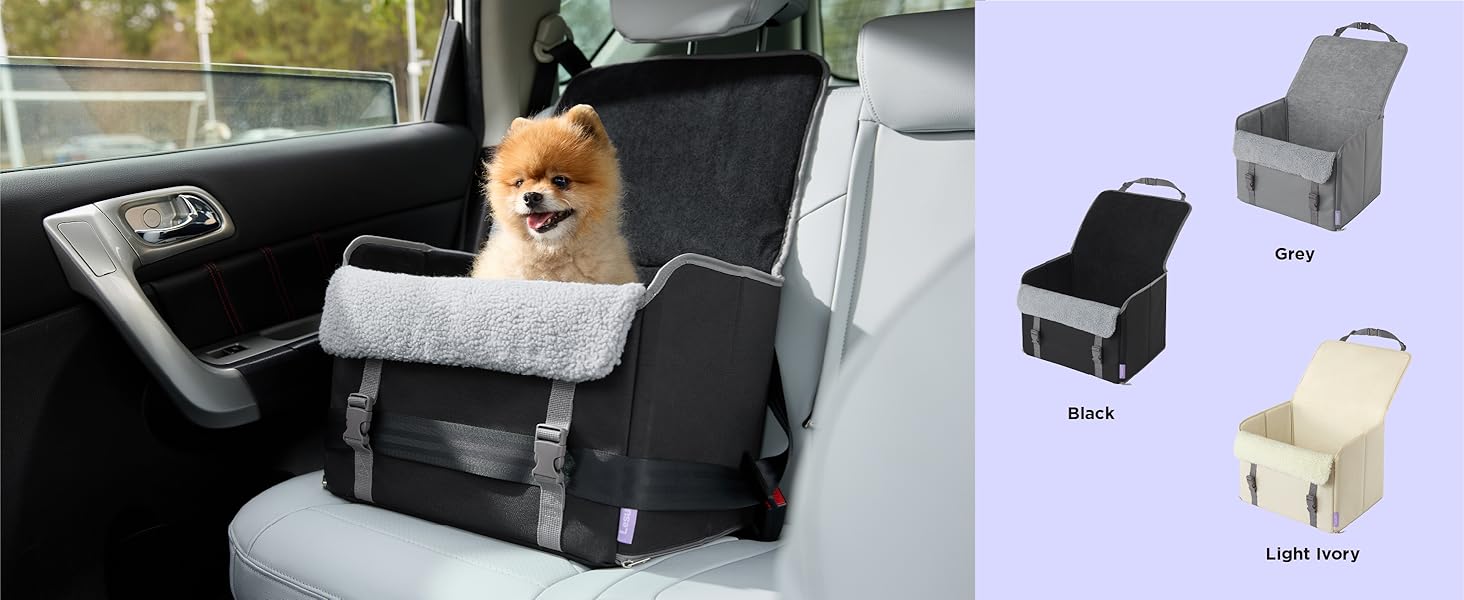 Waterproof & Machine-Washable- The bottom booster pad and headrest covers of dog bed for car are removable, making them a breeze to clean. Simply throw the cover into the washer for unlimited freshness every single time. While the waterproof fabric repels any unwanted liquids keeping our car seat consistently clean.