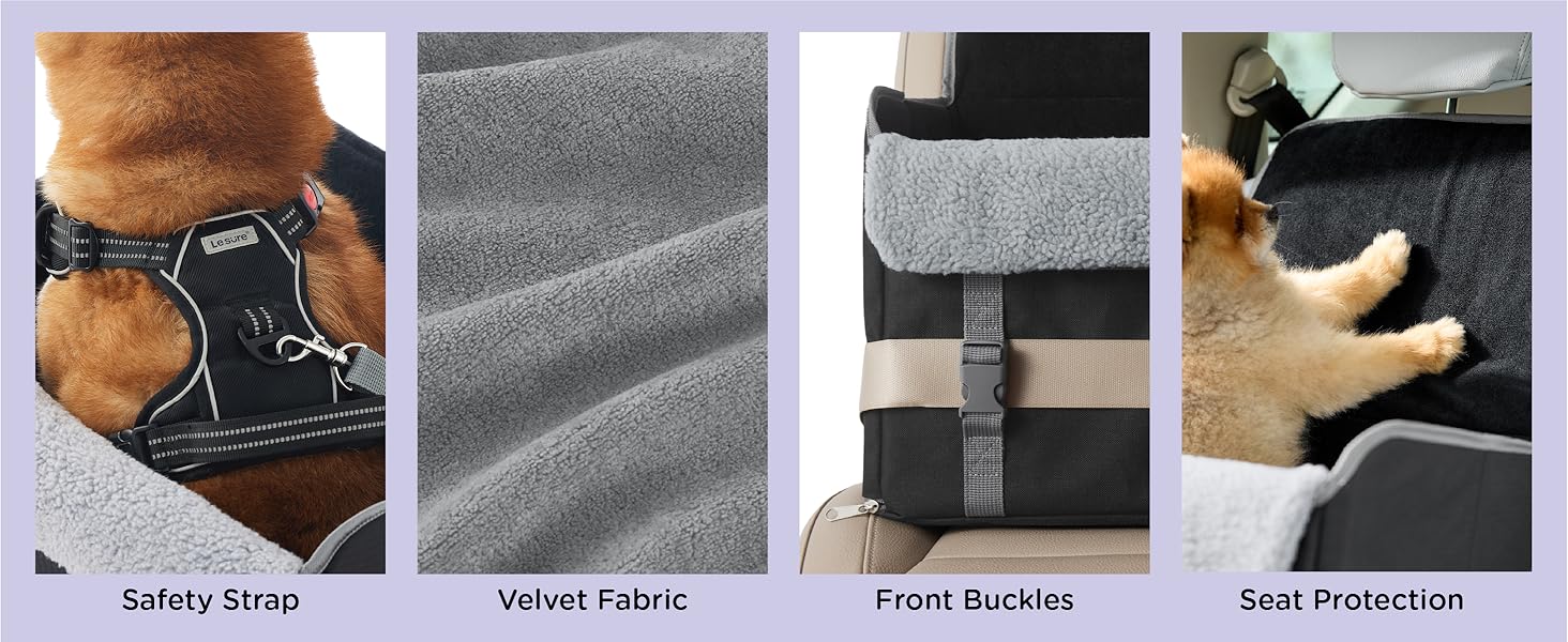 Safety & Seat Protector- With your pet’s safety as our top priority, the dog car seats for small dogs includes patent buckles and an adjustable clip-on leash. These features secure the pet car seat in place and prevent your pet from jumping out, allowing them to stay comfortable and secure without distracting the driver.In addition, the seat protector on the back will protect your seat from being scratched by your pet.