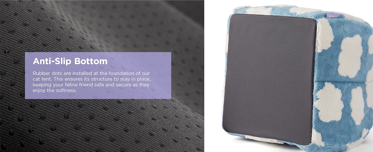 LUXURY SOFT FABRICS- Our intuitive cat tent features an ultra-soft cushion for maximum comfort. Its interior fill is designed with polyester fibers for durability while the cover is crafted with exceptionally plush Sherpa. This dual design provides the ultimate cozy sanctuary for your pet's peaceful slumber.