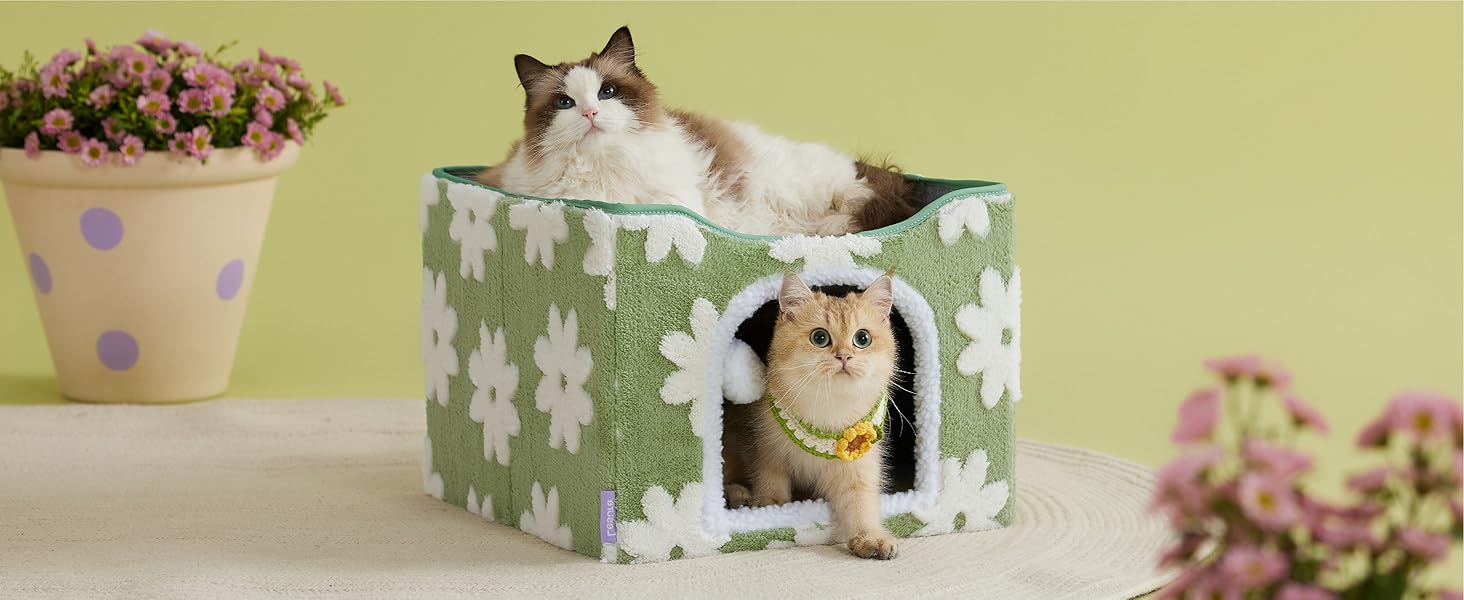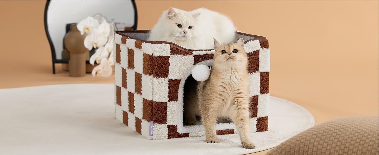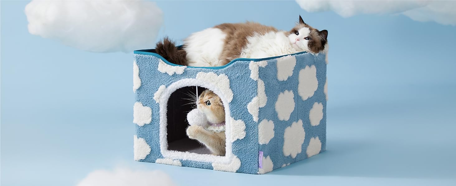 PLAYFUL & PET SAFE- Crafted with pet-friendly MDF materials with CARB Certification and luxury soft lambswool fabric. Our cat house is equipped with a ultra-plush hanging ball to keep your cat engaged and entertained.