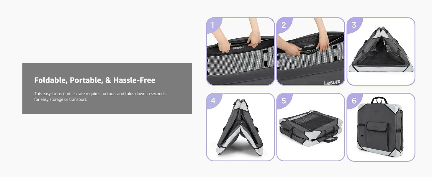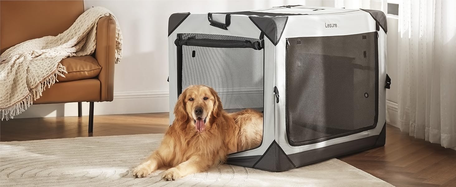 FOLDABLE AND SPACE-SAVING DESIGN - This soft dog crate for large dogs offers a safe, comfy space and folds down in seconds for easy travel or storage. It sets up quickly without tools.