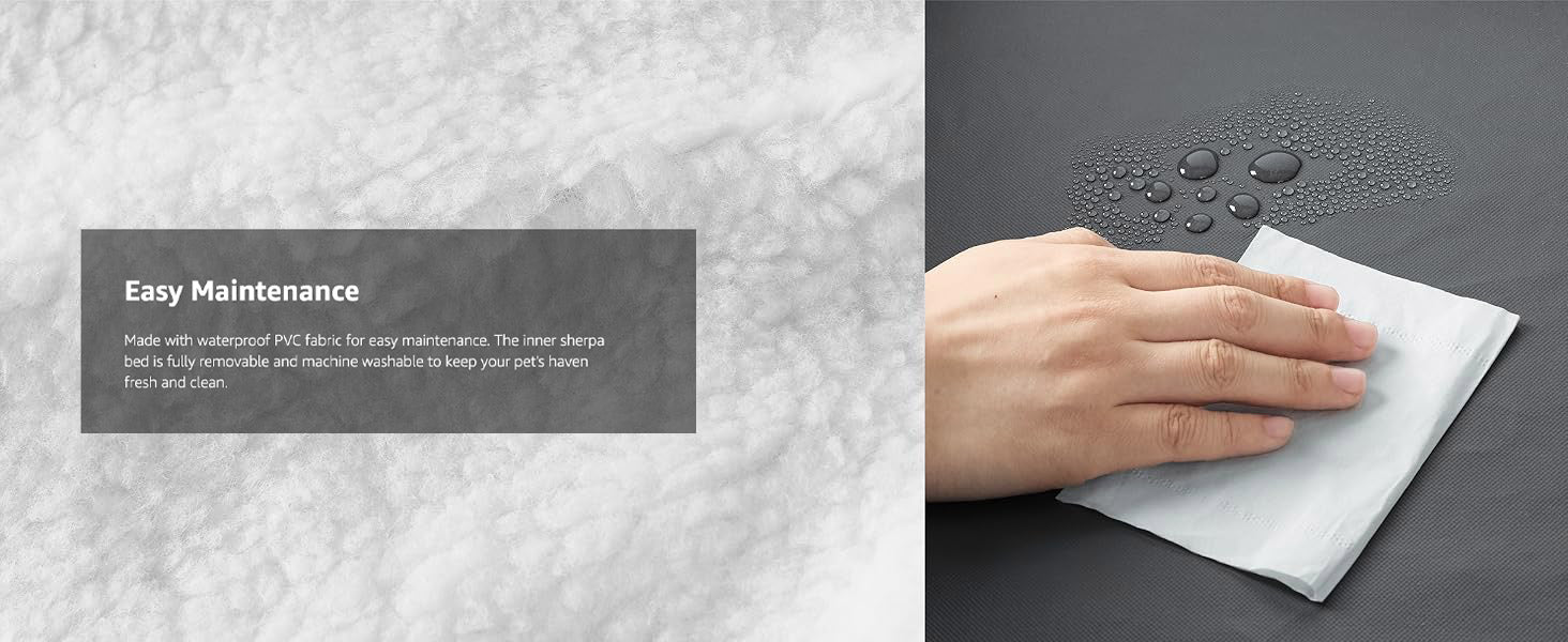 EASY TO CLEAN - Made from waterproof PVC, it wipes clean easily. The removable, washable sherpa mattress simplifies cleaning and maintenance.