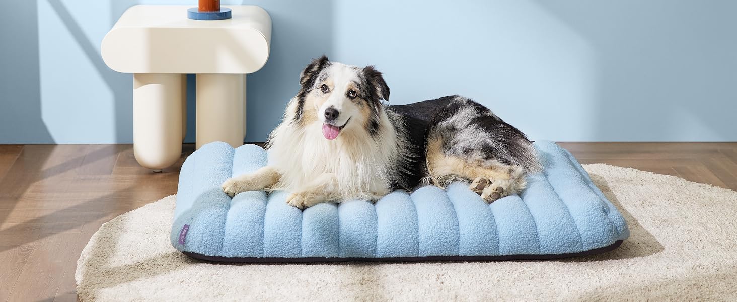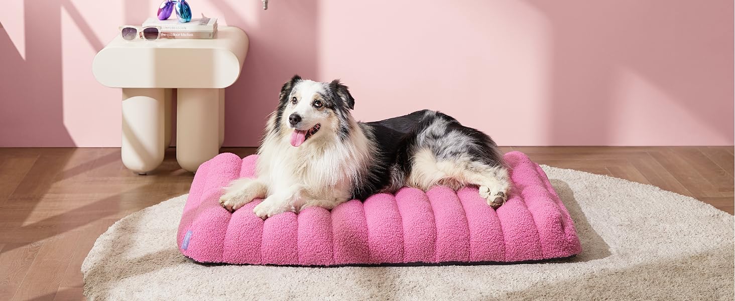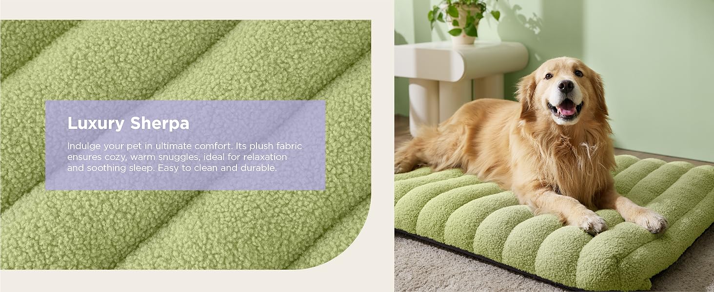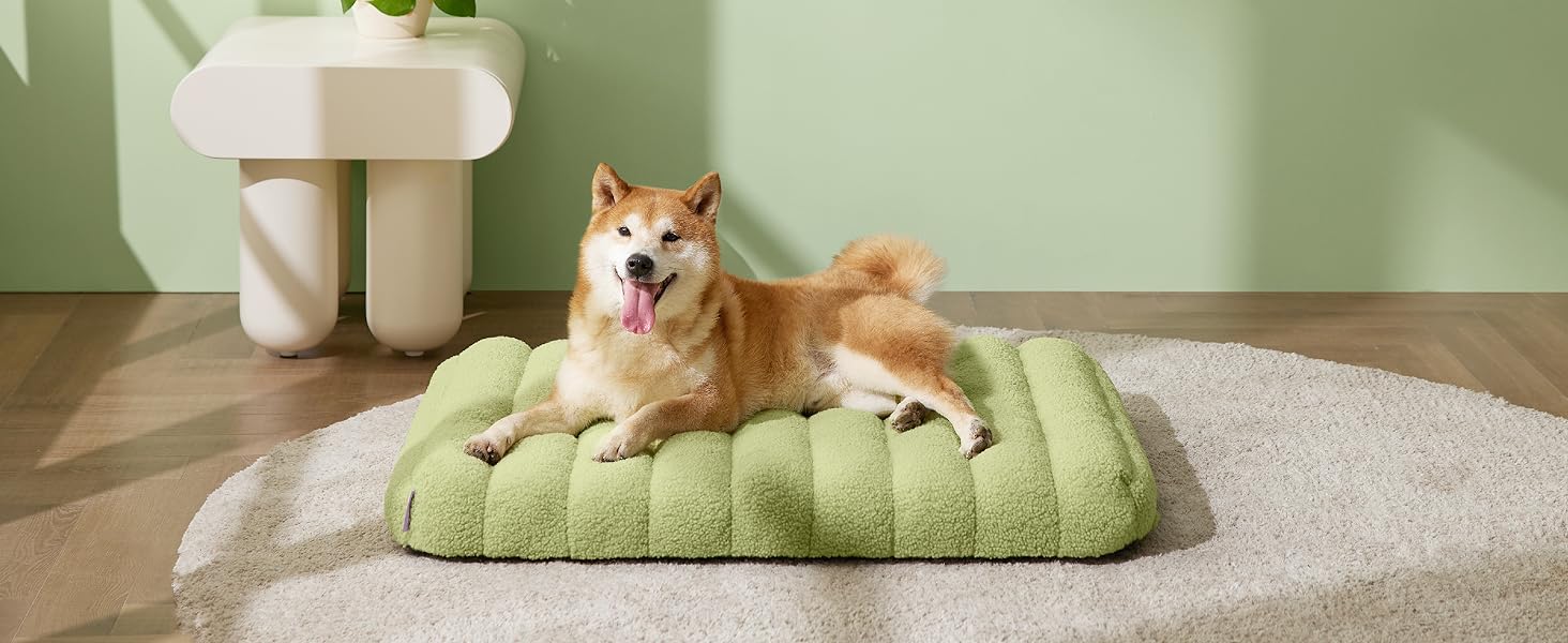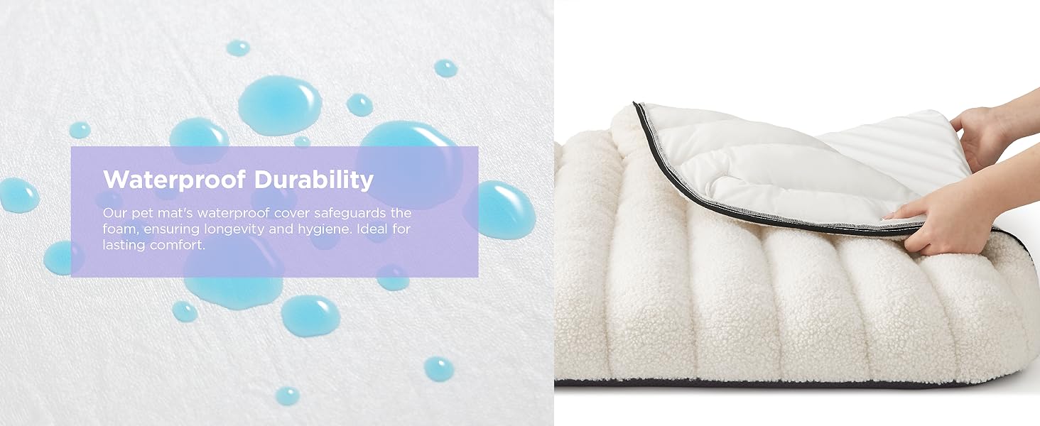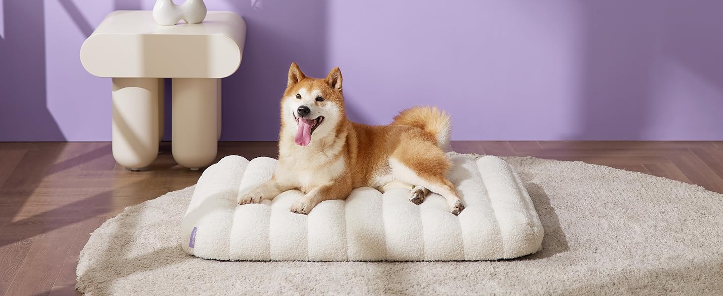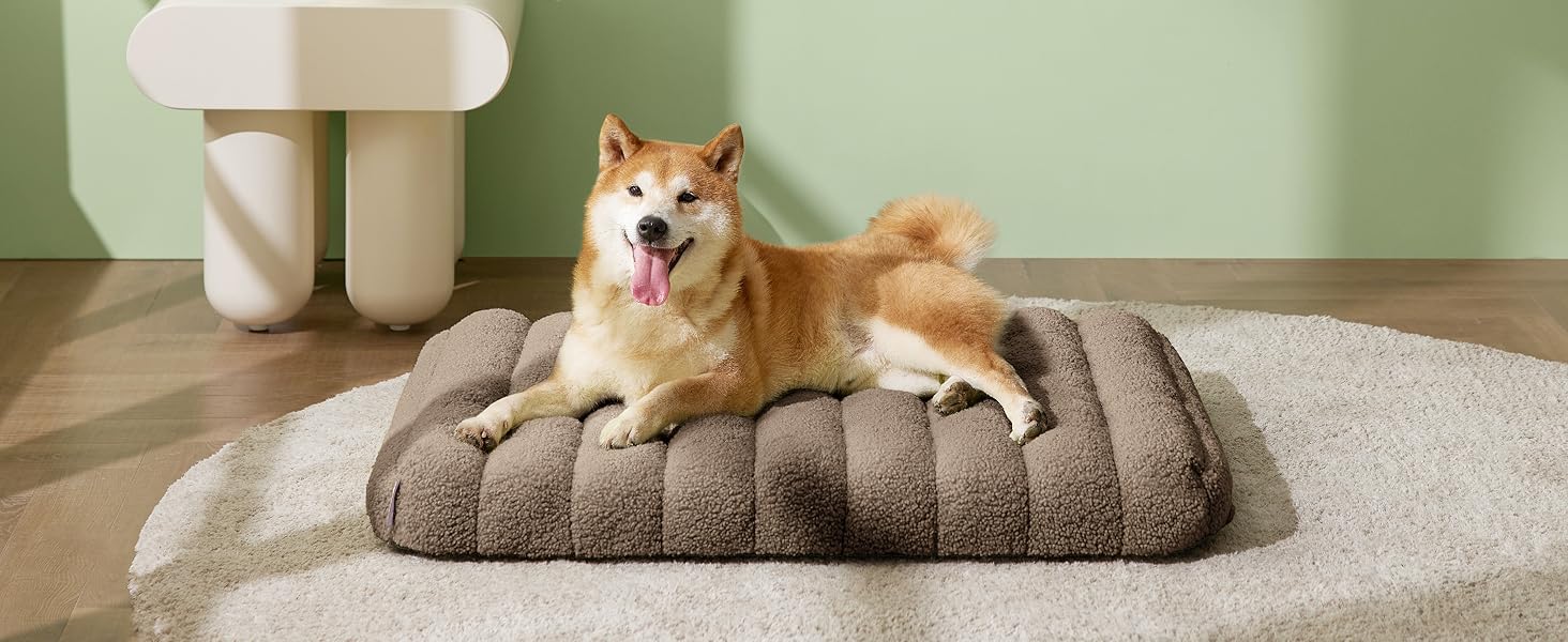 PET-PERFECT DESIGN - Discover ultimate relaxation with our Sherpa Plush Mat - its classic shape and signature design offer ample space for your pet to stretch and snooze. Perfect for any decor, it's easy to move indoors, outdoors, or during travel.