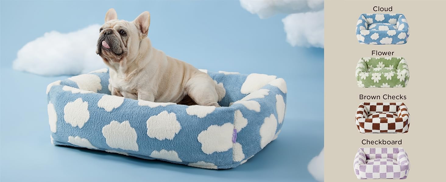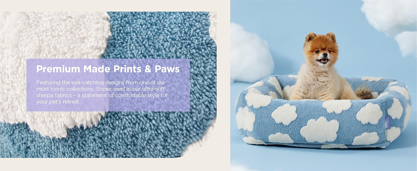 GREAT HOME DÉCOR- Elevate your pet’s sleeping space with our chic rectangle puppy bed. Featuring the bestsellers from our iconic Prints & Paws collection, a fan favorite of pet lovers everywhere. Whether it’s staying cozy up in the clouds, enjoying a lush floral garden, or entering a pastel paradise, rest assured our adorable jacquard patterns add a special artistic vibe to any home.